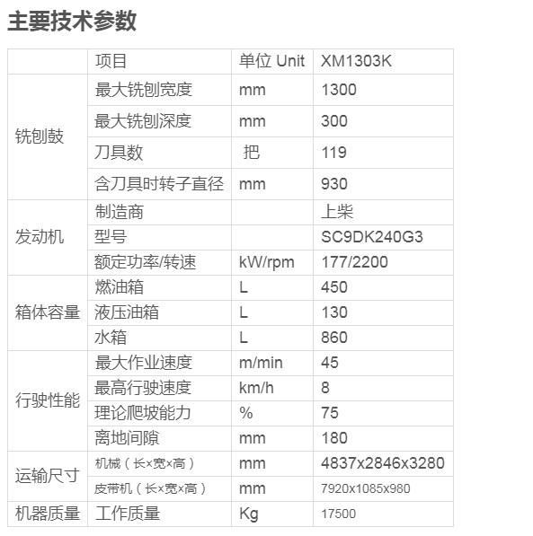 XM1303K是一款具有高性能的一米三銑刨機(jī),主要用于公路、城鎮(zhèn)道路、機(jī)場(chǎng)、貨場(chǎng)、停車場(chǎng)等瀝青混凝土面層的開(kāi)挖翻新?梢愿咝У颓宄访姘b包、油浪、網(wǎng)紋、車轍等;亦可開(kāi)挖路面坑槽及溝槽;還可用于水泥路面的拉毛及面層錯(cuò)臺(tái)的銑平。該設(shè)備工作效率高,施工工藝劍達(dá),銑刨深度易于控制,操作方便靈活,機(jī)動(dòng)性能好,銑刨的舊料能直接回收利用,可廣泛地用于瀝青路面的維修翻新養(yǎng)護(hù)施工之中。